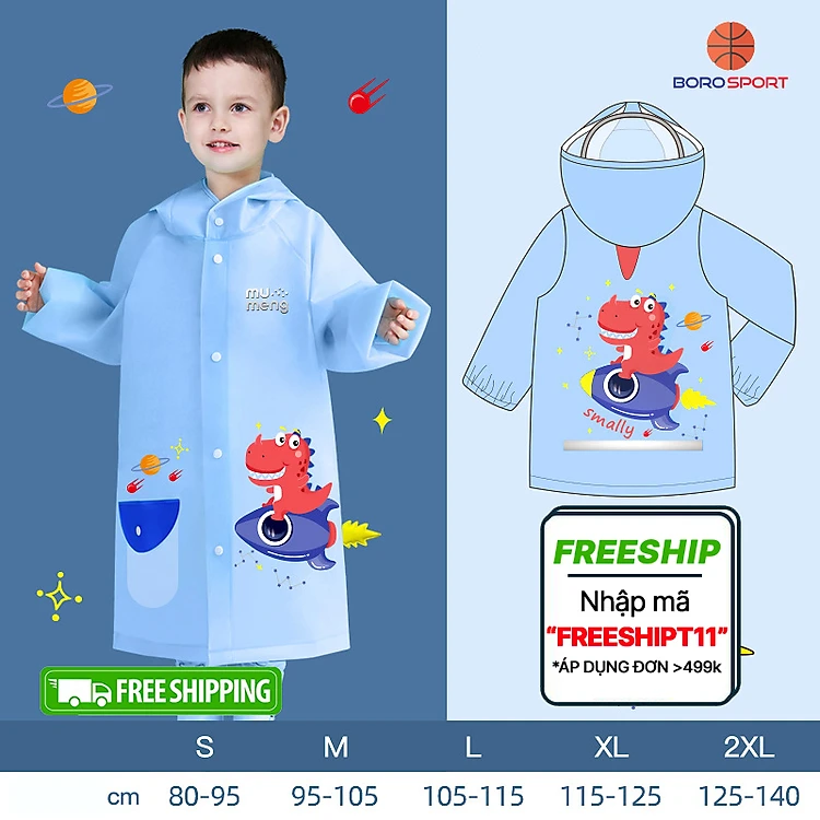 Áo mưa trẻ EM CHO BÉ TRAI BÉ GÁI CÓ CHIỀU CAO TỪ 80CM-140CM , CHẤT LIỆU eva MỀM MẠI AN TOÀN , CHỐNG THẤM , SIÊU BỀN - BORO SPORT