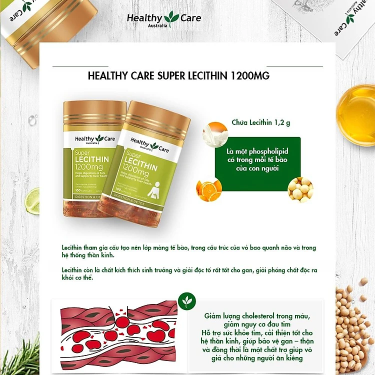Mầm đậu nành Úc Healthy Care Super Lecithin 1200mg tăng cường chức năng gan khỏe mạnh, nâng cao sức khỏe, sắc đẹp từ bên trong - OZ Slim Store