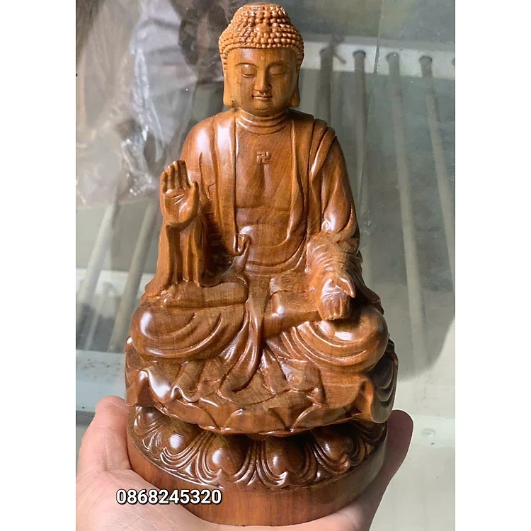 Tượng phật adiđà bằng gỗ bách xanh thơm nức kt cao 15×9×9cm