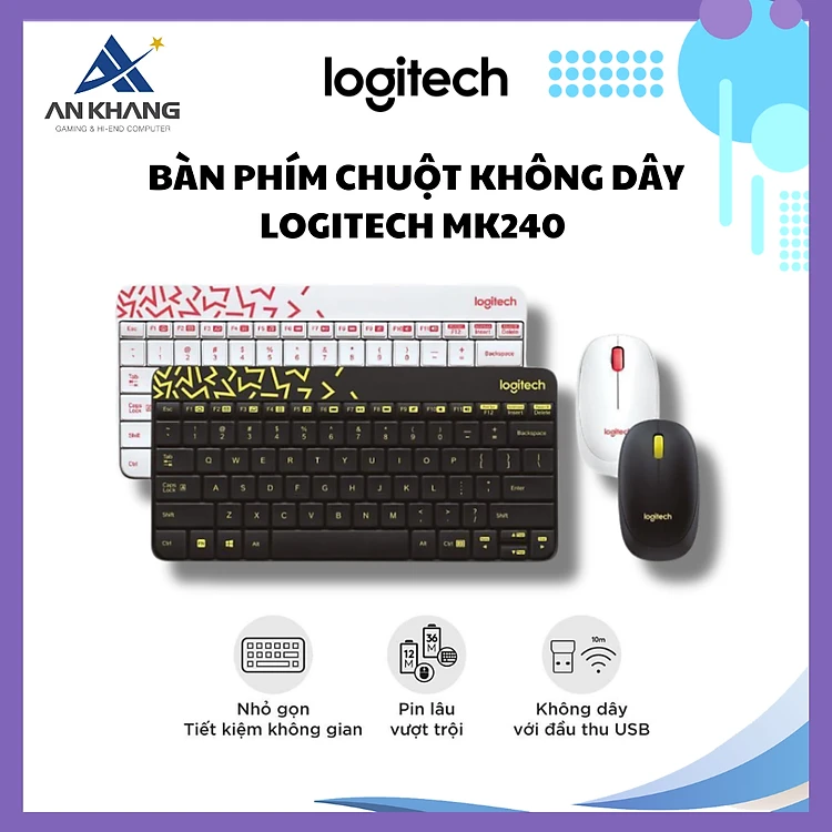 Bàn phím chuột Logitech MK240 Nano - kết nối Không dây Usb 2.4 Ghz - Hàng Chính Hãng