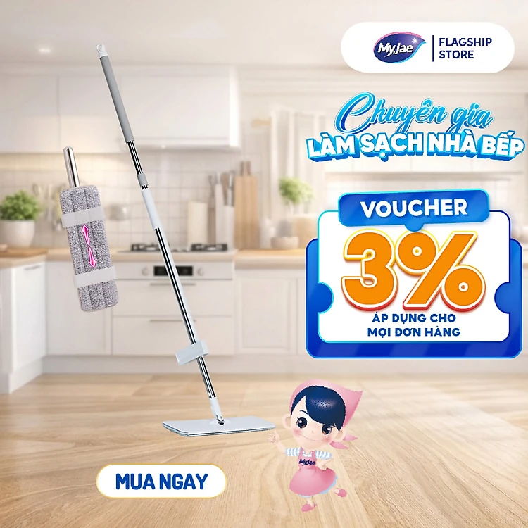 Cây Lau Nhà MyJae Đài Loan Sợi Polyester Kéo Vắt Thông Minh 360 Độ 125cm