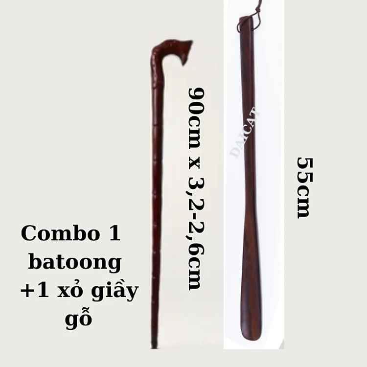 Combo Batoong chống trượt cho người già -đầu rồng-gỗ xà cừ tự nhiên Cây xỏ giầy gỗ muồng đên 55cm
