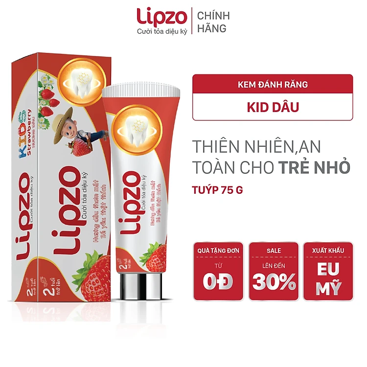 Kem Đánh Răng Trẻ Em Lipzo Vị Dâu Bảo Vệ Răng Sữa 75g Hữu Cơ Ngọt Thơm An Toàn Nuốt Được Dành Cho Trẻ Em Từ 2-10 Tuổi