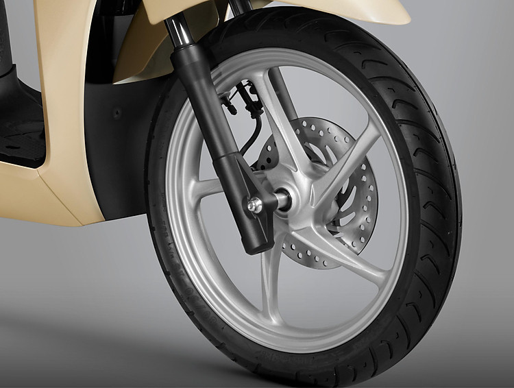 Bánh xe trước có kích thước lớn 16 inch, kết hợp với thiết kế liền mạch ở thân xe, đem đến tư thế lái xe cao, thẳng đứng cùng tầm nhìn thoáng rộng.