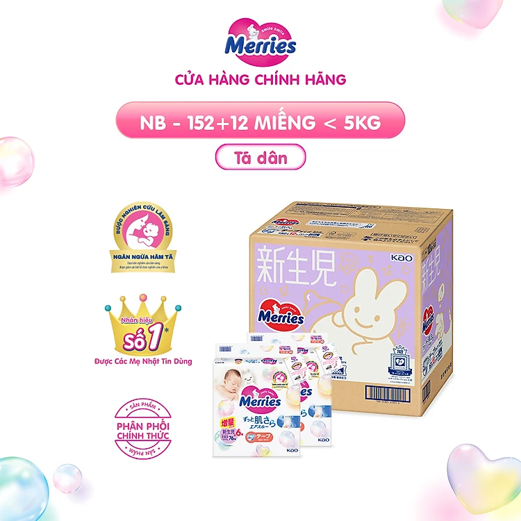Thùng 2 Tã/bỉm dán Merries cộng miếng đủ size NB82/S76/M60