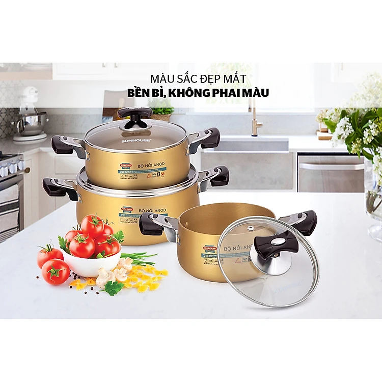 Bộ Nồi Anod Sunhouse SH6634 -SH6634N (16-20-24cm)-Hàng chính hãng