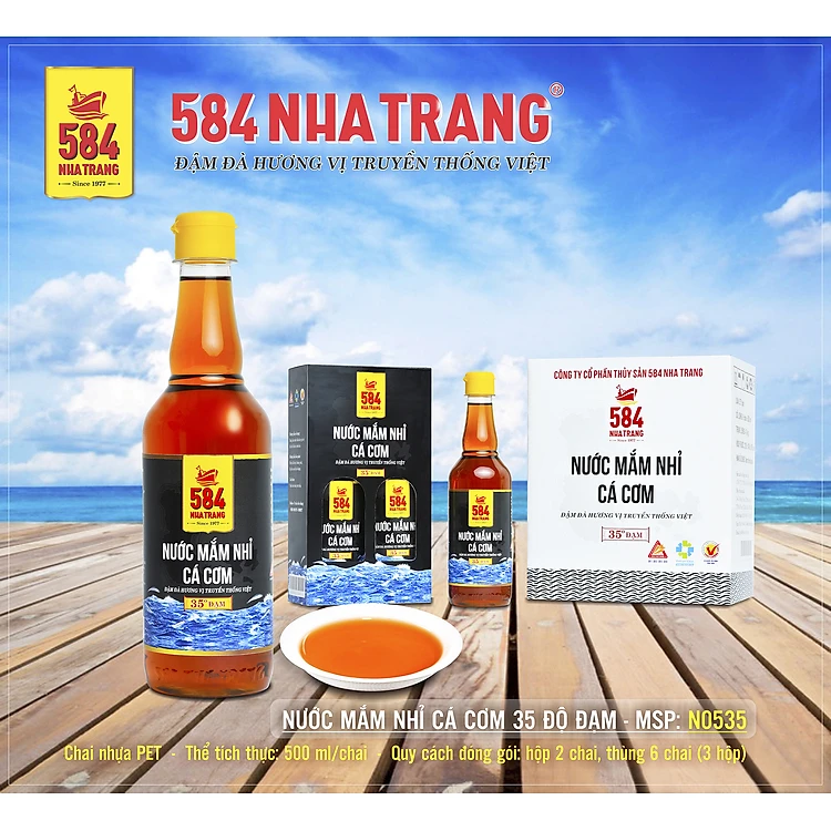 Thùng 6 Chai Nước mắm Nhỉ Cá cơm 584 Nha Trang - Loại 35 độ đạm - Chai Nhựa 500ml