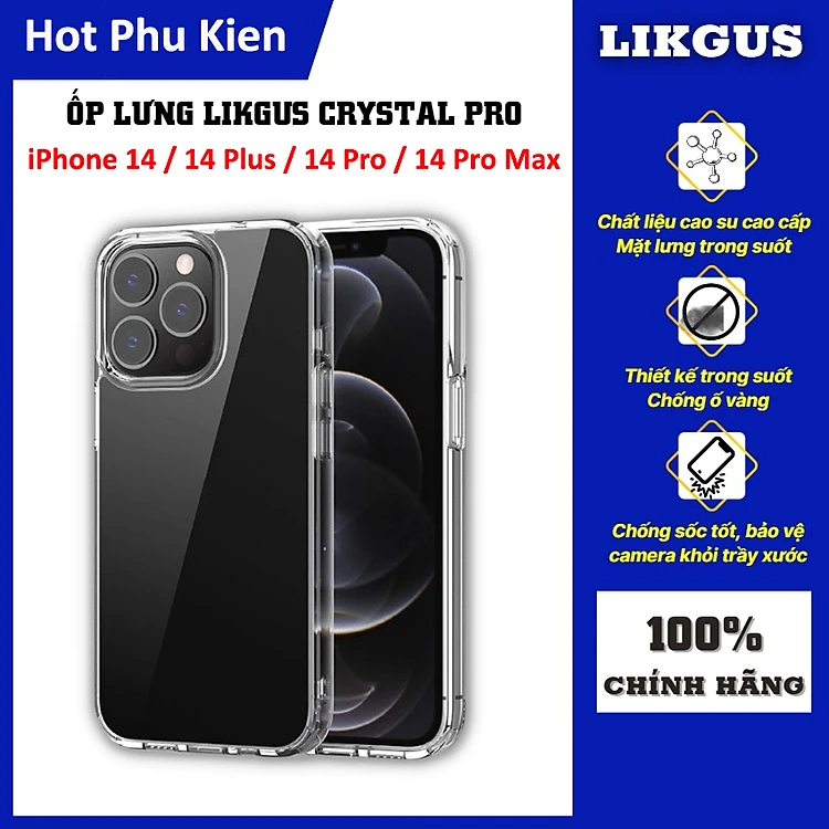 Ốp lưng chống sốc cho iPhone 14 / 14 Plus / 14 Pro / 14 Pro Max hiệu Likgus Crystal Pro - Thiết kế trong suốt, chống ố, giúp chống chịu mọi va đập - hàng nhập khẩu
