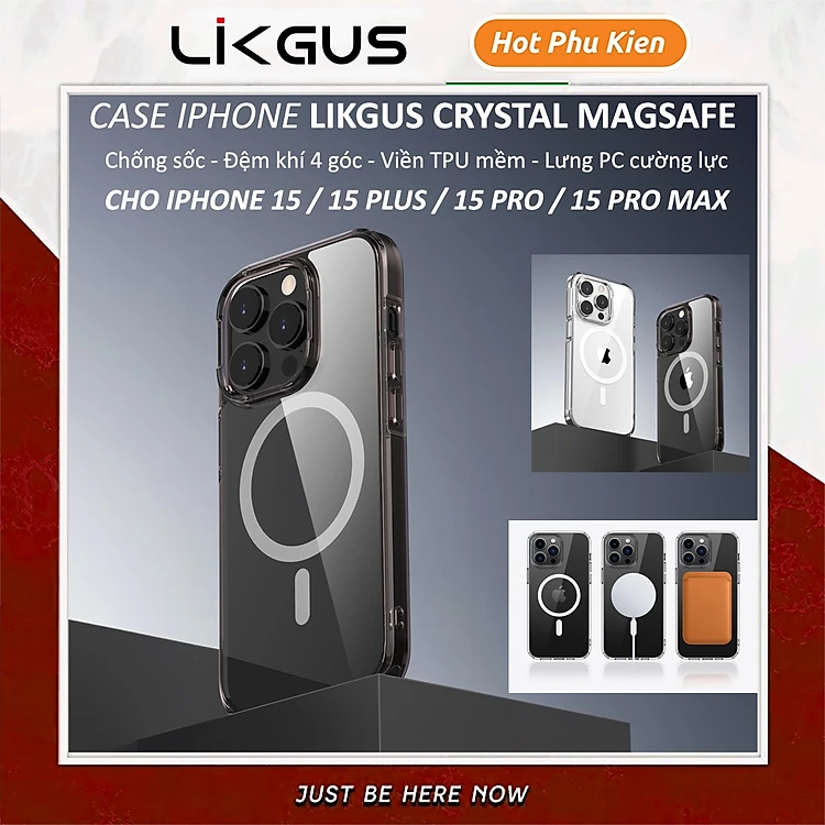 Ốp lưng trong suốt sạc nam châm từ tính cho iPhone 15 Pro Max / 15 Pro / 15 Plus / iP 15 hiệu Likgus Crystal Magnetic - Trang bị đệm khí 4 góc, chống ố vàng, bảo vệ viền camera - Hàng nhập khẩu
