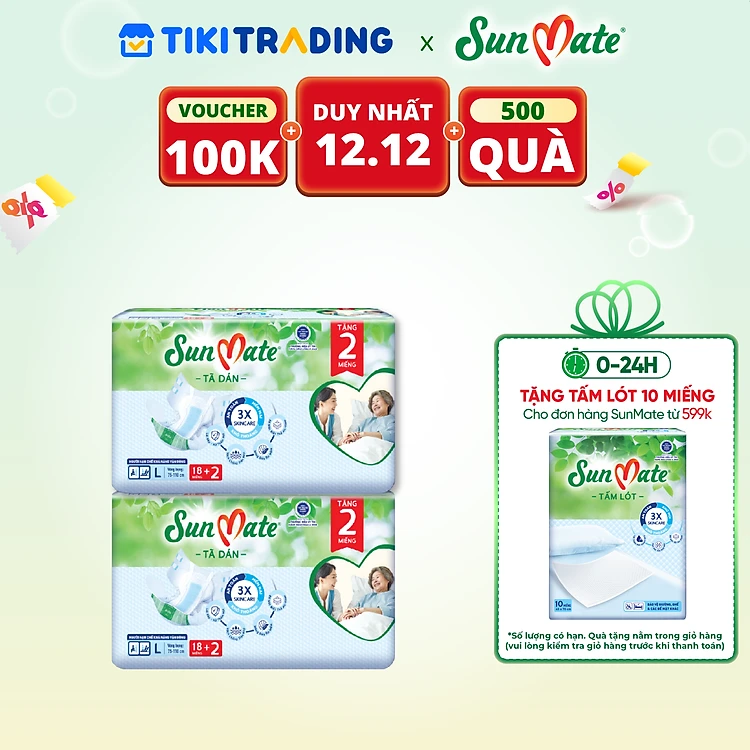 [Mẫu mới] Combo 2 Tã dán người lớn SunMate XA2 mới size L-18+2 miếng