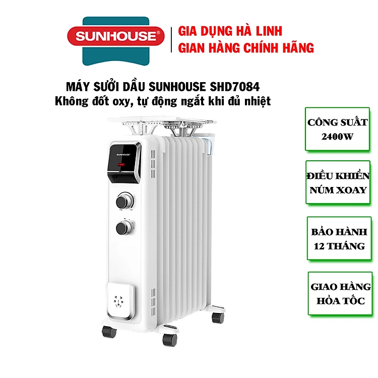 Máy sưởi dầu Sunhouse SHD7084, Công suất 2400W, 13 lá phát nhiệt, làm ấm nhanh, Có giàn phơi - Hàng chính hãng, bảo hành 12 tháng