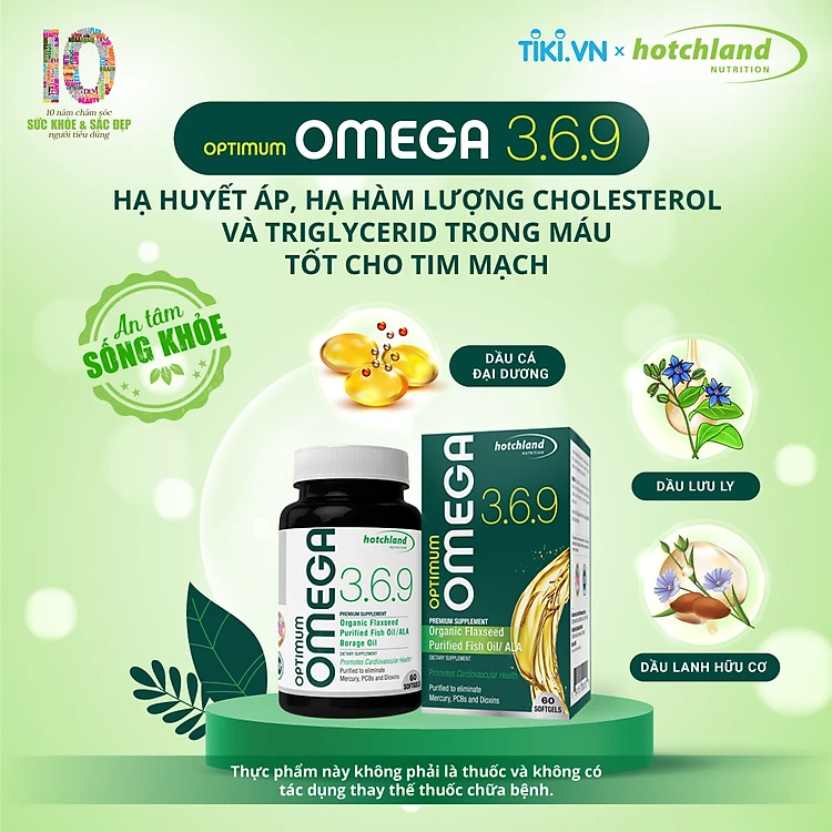 Viên uống Omega369 - Optimum Omega 3.6.9 Hotchland Nutrition hỗ trợ não bộ, thị lực, tim mạch, giảm nguy cơ đột quỵ - Hộp 60v - Hàng chính hãng nhập khẩu Mỹ