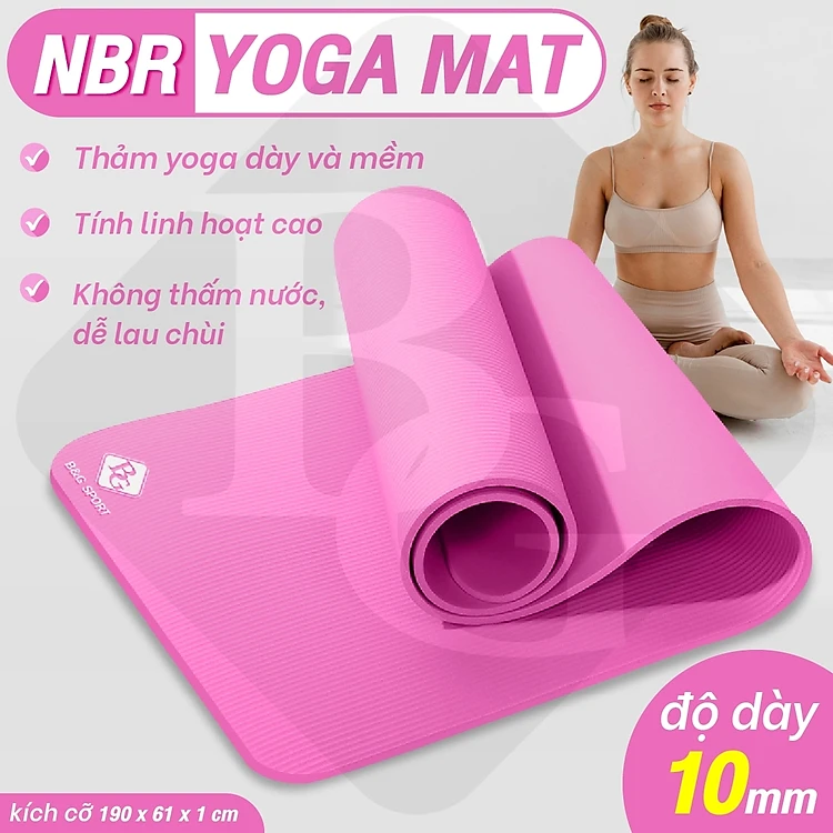 BG Thảm tập Yoga,GYM chuyên dụng dày 10mm cao su NBR nguyên khối, độ đài hồi tốt, chống lún, Chống trơn trượt, độ bám cao, ngăn ngừa hôi và ẩm mốc (hàng nhập khẩu)
