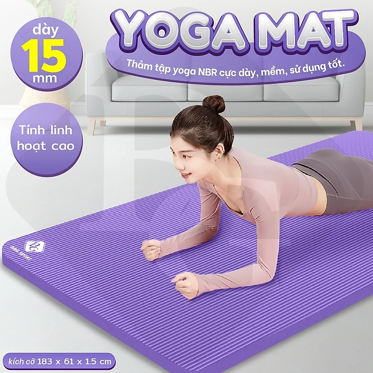 BG Thảm tập Yoga,GYM chuyên dụng dày 15mm NBR nguyên khối, độ đài hồi tốt, chống lún, Chống trơn trượt, độ bám cao, ngăn ngừa hôi và ẩm mốc (hàng nhập khẩu)