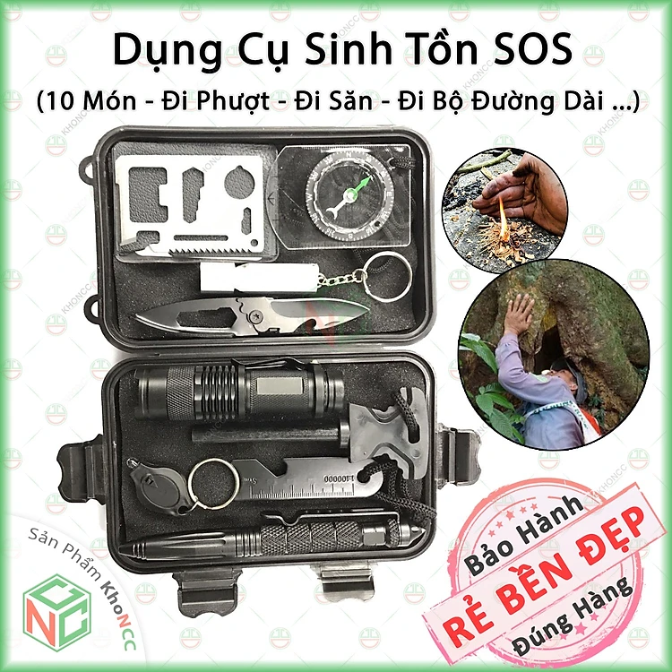 [An Toàn] Bộ Dụng Cụ Sinh Tồn SOS KhoNCC Hàng Chính Hãng - Bảo Vệ Sự Sống Lợi Ích Tuyệt Vời - KLM-DCSTSOS10M