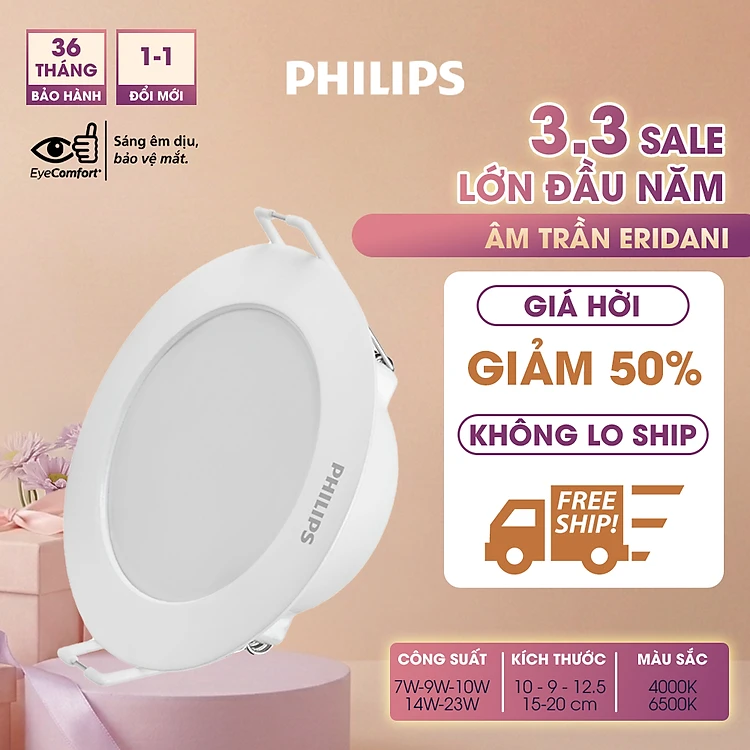 Bộ đèn âm trần Philips LED Eridani hiệu suất ánh sáng cao - Công suất (7W, 9W, 10W, 14W. 23W)