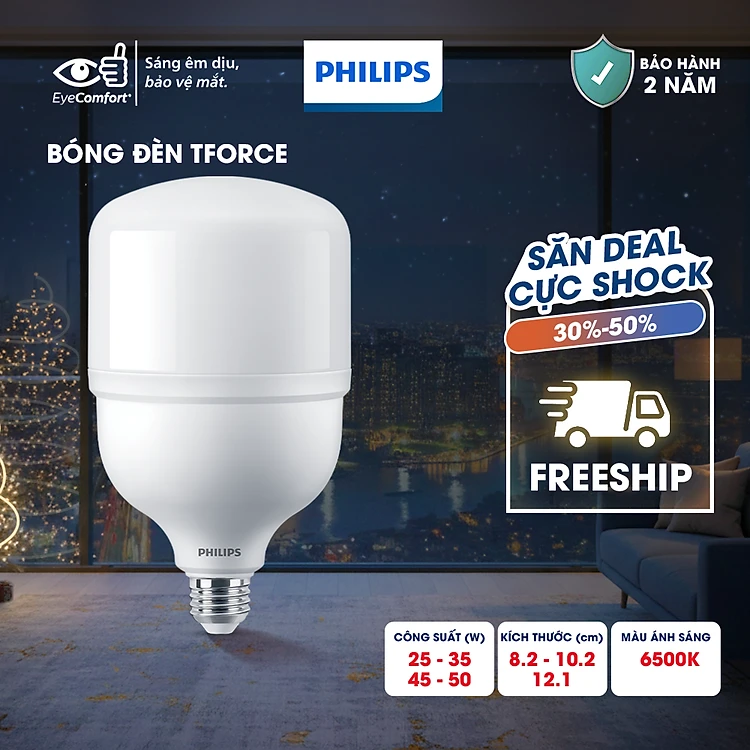 Bóng đèn Philips trụ TForce siêu sáng (25W,35W,45W, 50W) - Ánh sáng trắng 6500K (01 bóng)