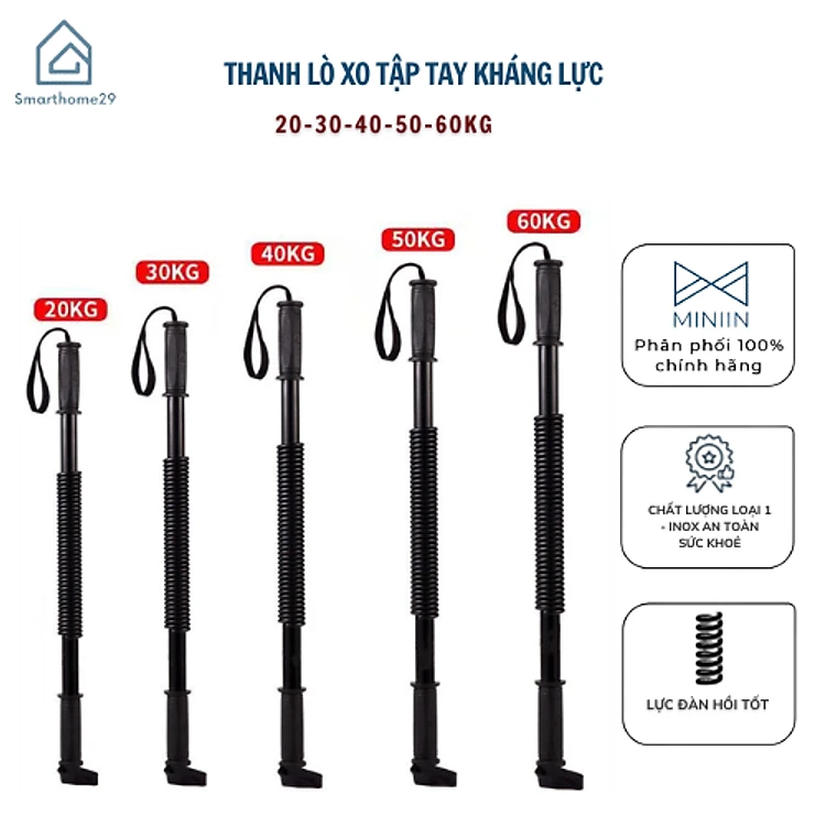 Gậy Bẻ Tập Cơ Tay Gậy Lò Xo Lực 20kg,25kg,30Kg,40kg,50kg,60kg - Thanh Lò Xò Tập Tay Tại Nhà Cao Cấp - Hàng Chính Hãng MINIIN