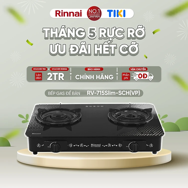 Bếp gas dương Rinnai RV-715Slim-SCH(VP) mặt bếp kính SCHOTT và kiềng bếp men - Hàng chính hãng.