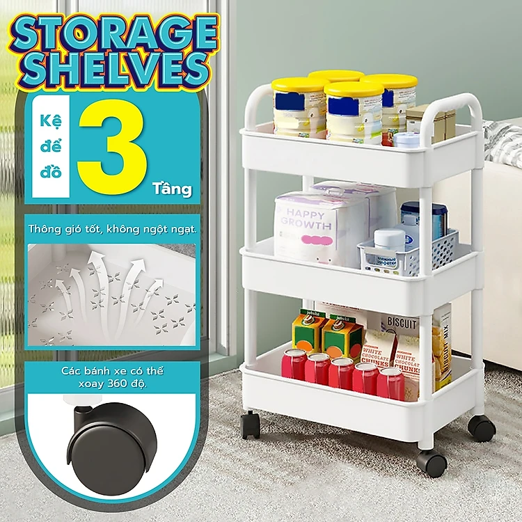 [4026] BG Kệ đa năng 3/4/5 - bánh xe, giỏ đựng đồ, Dễ dàng di chuyển giá sách đa năng,Kệ đa năng có bánh xe, di chuyển tiện lợi (hàng nhập khẩu)