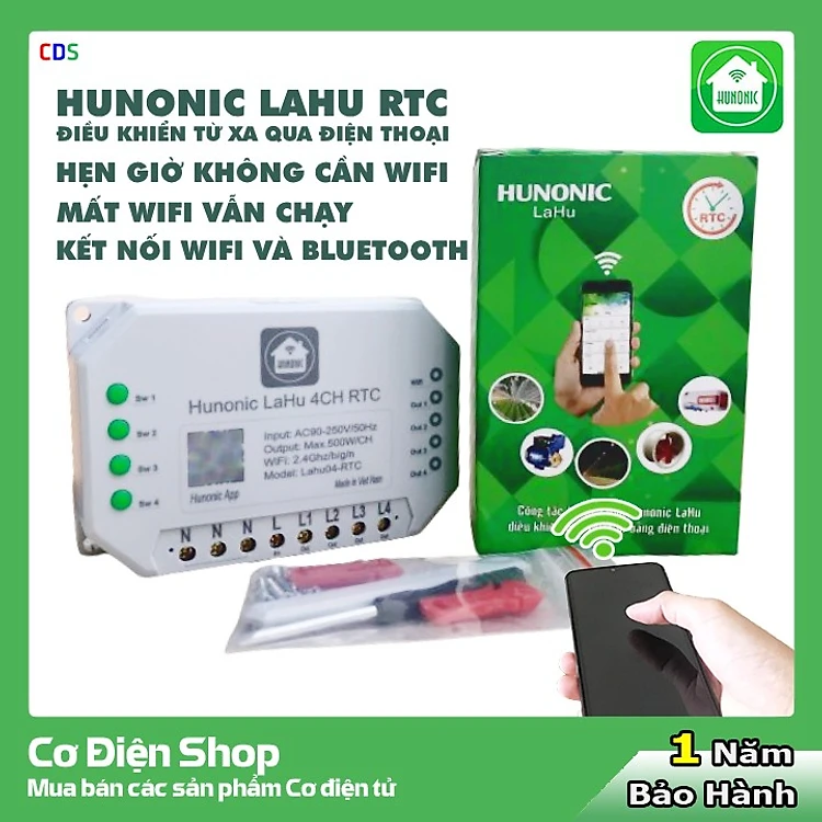 Công tắc thông minh [ĐIỀU KHIỂN TỪ XA] Hunonic Lahu 4 Kênh RTC - Điều khiển qua Wifi, Bluetooth - Hẹn giờ không cần wifi