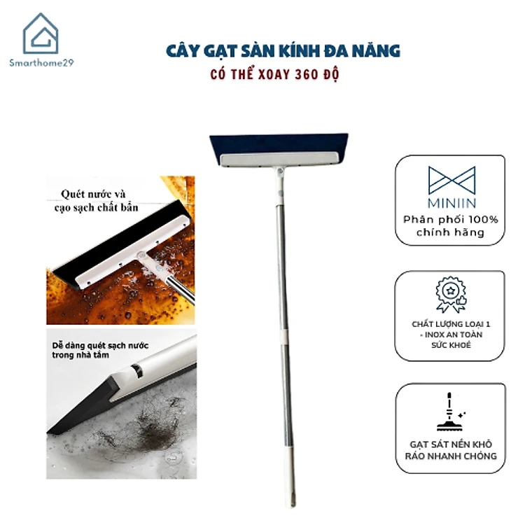 Cây Gạt Sàn Gạt Kính Đa Năng Xoay 360 Độ Cán Tùy Chỉnh Độ Dài Từ 85 - 135cm, Chổi gạt nước - HÀNG CHÍNH HÃNG MINIIN