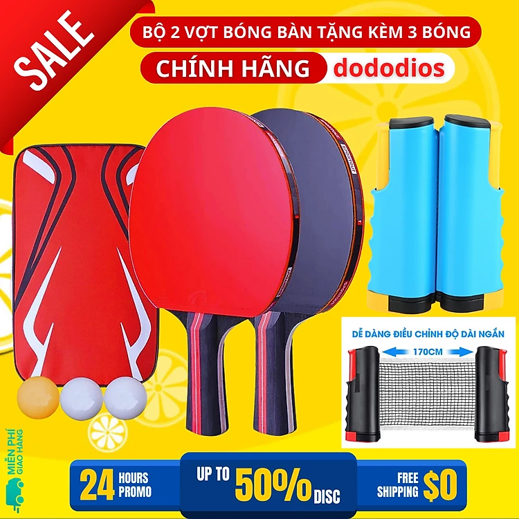 Combo 2 Vợt Bóng Bàn Tặng Kèm 3 Quả Bóng Bàn + Kẹp Trụ Lưới Bóng Bàn Rút Gọn Nhựa ABS 1,7m Chính Hãng dododios