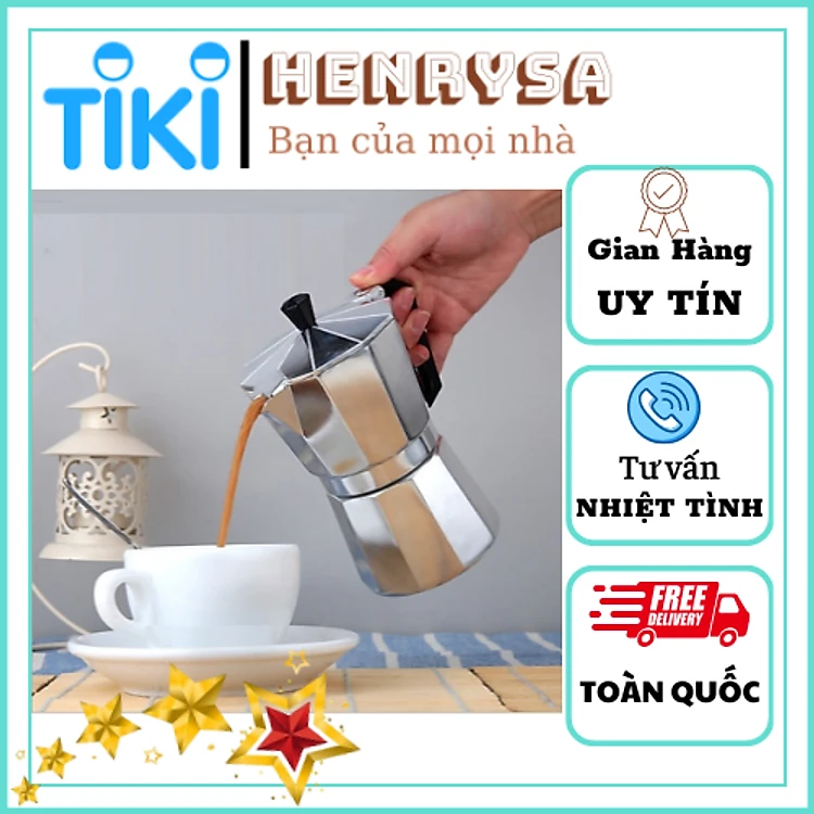 Bình pha cà phê kiểu Ý- Ấm pha cà phê chất liệu nhôm cao cấp -Hàng chính hãng Henrysa