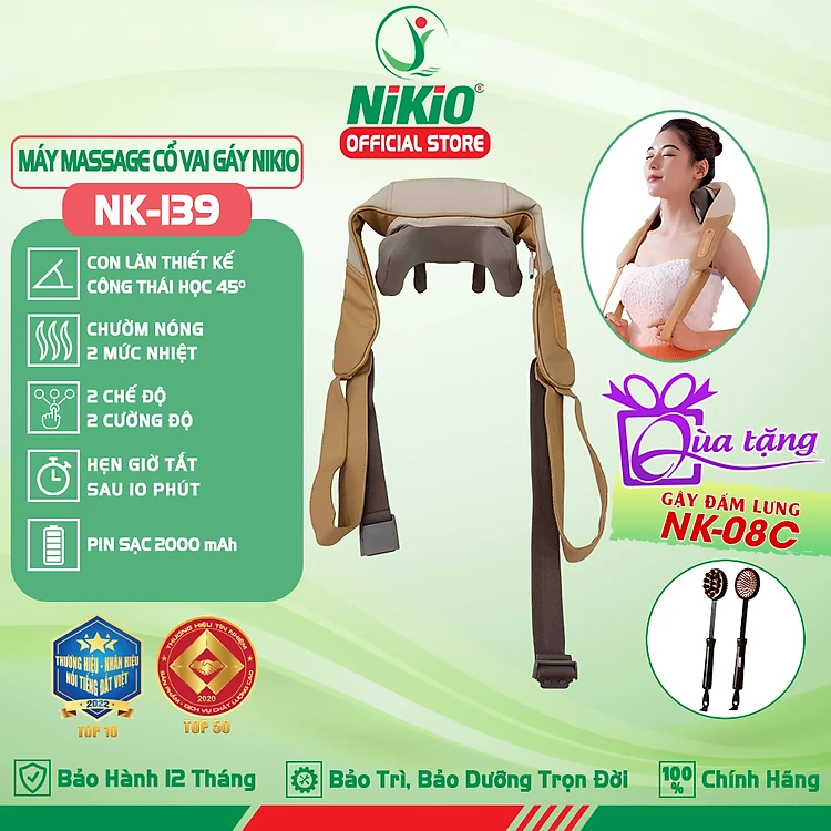 Máy massage cổ vai gáy Nikio NK-139 - Công nghệ xoa bóp kết hợp nhiệt nóng, mát xa chuyên sâu