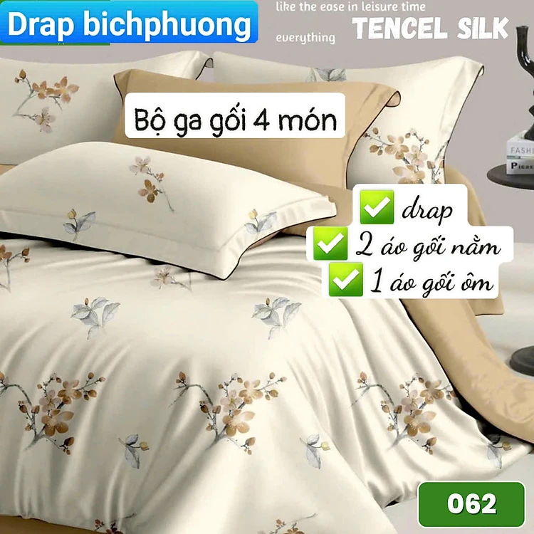 Bộ drap gối Tencel vải Hàn Quốc , đỉnh cao mát , mềm mại { drap và 3 áo gối}