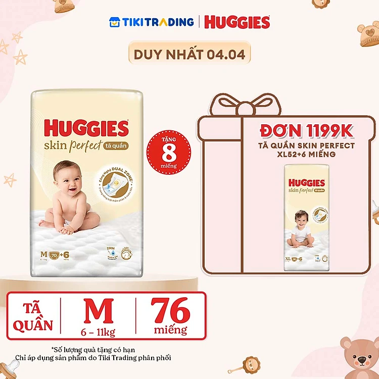 Tã quần Huggies Skin Perfect M Super Jumbo 70+6 miếng với 2 vùng thấm giảm kích ứng da