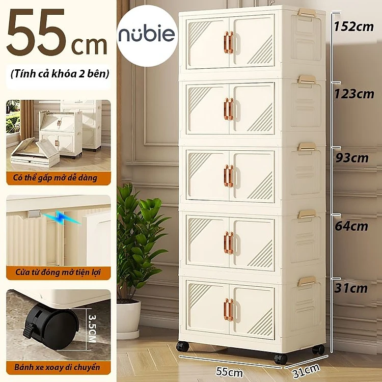 (Ngang 45-75cm) Tủ Nhựa Gấp Gọn Size Lớn, Tủ Đựng Quần Áo Đa Năng Lắp Ghép, Để Đồ Tiện Dụng, Nhựa PP, Có Bánh Xe
