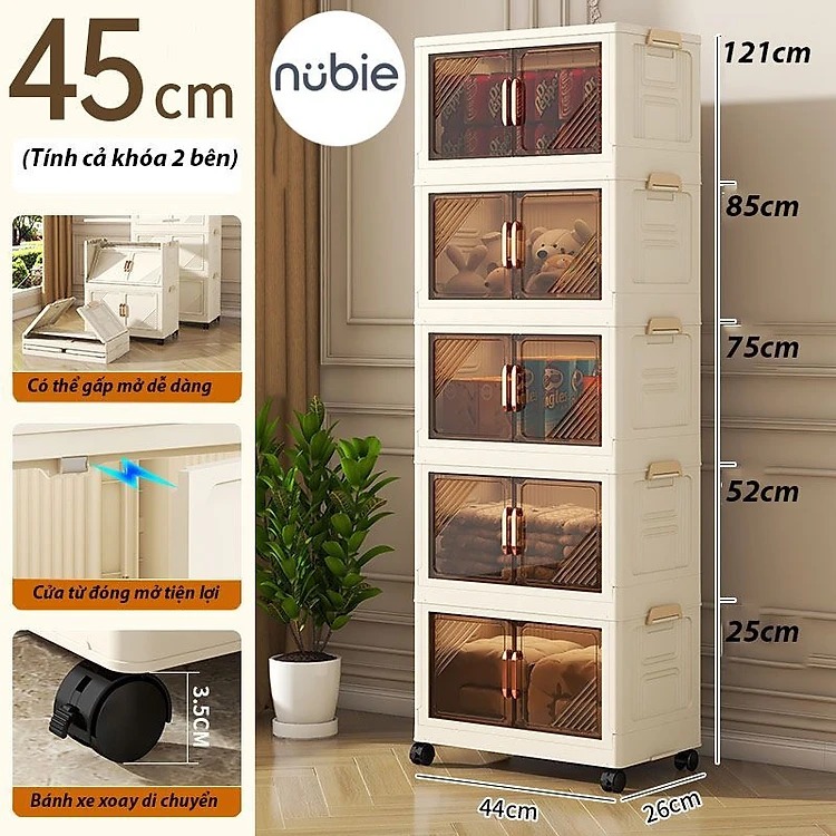 (Ngang 45-75cm) Tủ Nhựa Gấp Gọn Size Lớn, Tủ Đựng Quần Áo Đa Năng Lắp Ghép, Để Đồ Tiện Dụng, Nhựa PP, Có Bánh Xe