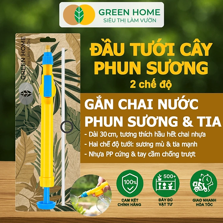 Đầu Tưới Cây Phun Sương, Greenhome, D30cm, Gắn Chai Nước, Cầm Tay, Áp Lực Cao, 2 Chế Độ Tưới, Phù Hợp Nhiều Loại Chai