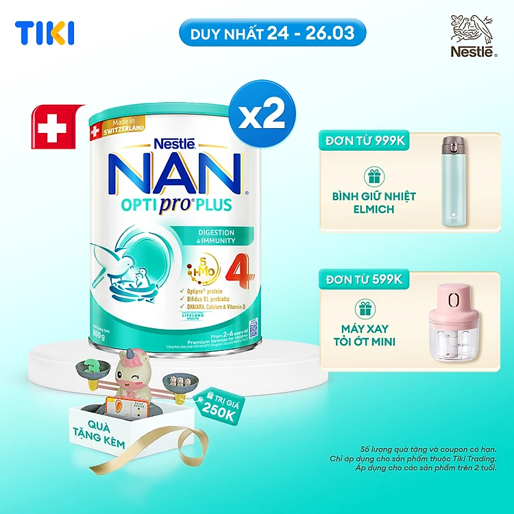 [Tặng Đồ chơi toán học cân bằng] Bộ 2 lon Sữa bột Nestlé NAN OPTIPRO PLUS 4 800g/lon với 5HMO Giúp tiêu hóa tốt + Tăng cường đề kháng - Bé 2-6 tuổi