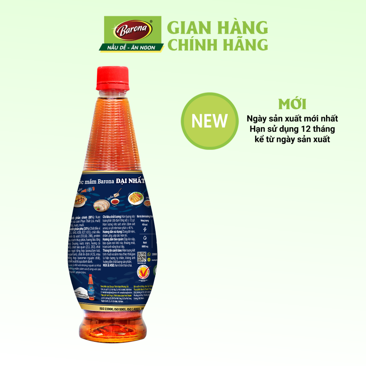 Nước Mắm Barona Đại Nhất 12 độ đạm - 900ml Tặng 1 chai Sate Siêu Ngon