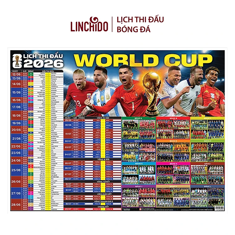 Lịch thi đấu bóng đá World Cup 2026 ( Kích thước 86 cm X 65 cm) chữ to, nhìn rõ