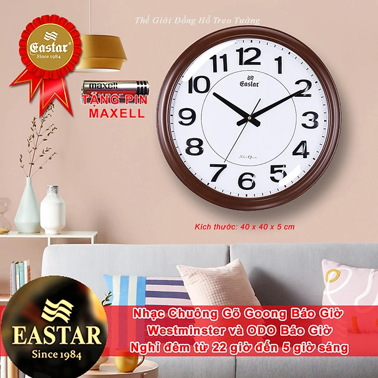 Đồng hồ NHẠC CHUÔNG BÁO GIỜ WESTMINSTER – Báo Nhạc 15 phút – Nghỉ Đêm – Máy Kim Trôi EASTAR Nhật – Mặt Tròn Số Nổi 3D - Tặng Pin Maxell - Bảo Hành 1 Năm