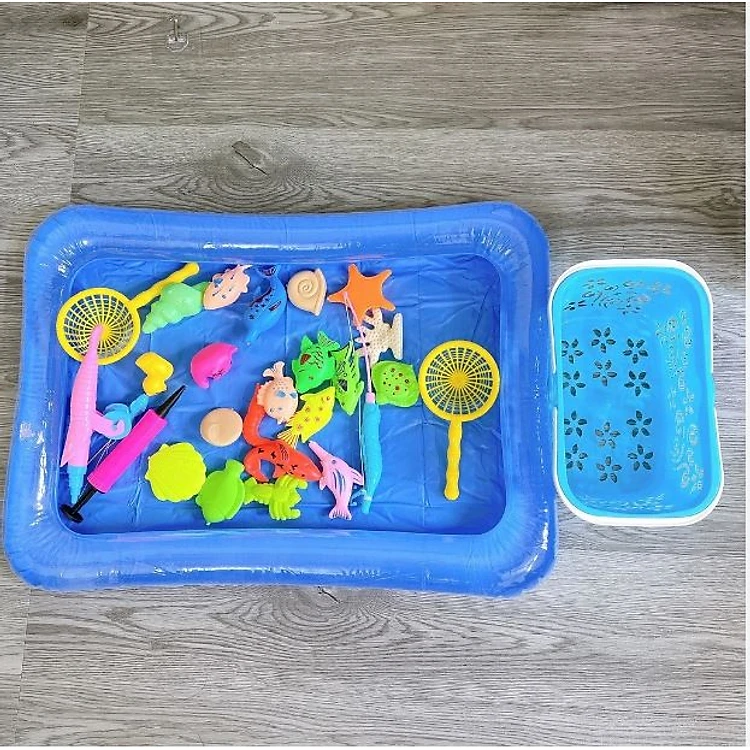 Đồ Chơi Câu Cá Cho Bé Nam Châm 28 Chi Tiết Có Bể Phao Tặng Kèm Đồ Bơm Tay - Bộ Câu Cá Cho Bé Trò Chơi Giải Trí