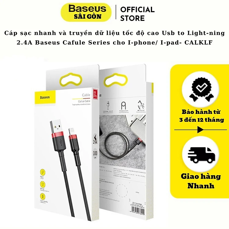 Cáp sạc dù nhanh Baseus Cafule Series 2.4A Usb to Light-ning CALKLF - hàng chính hãng