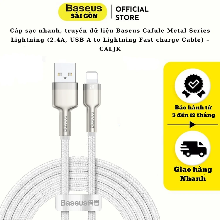 Cáp sạc nhanh Baseus Cafule Metal Series USB-IP CALJK 2.4A - hàng chính hãng