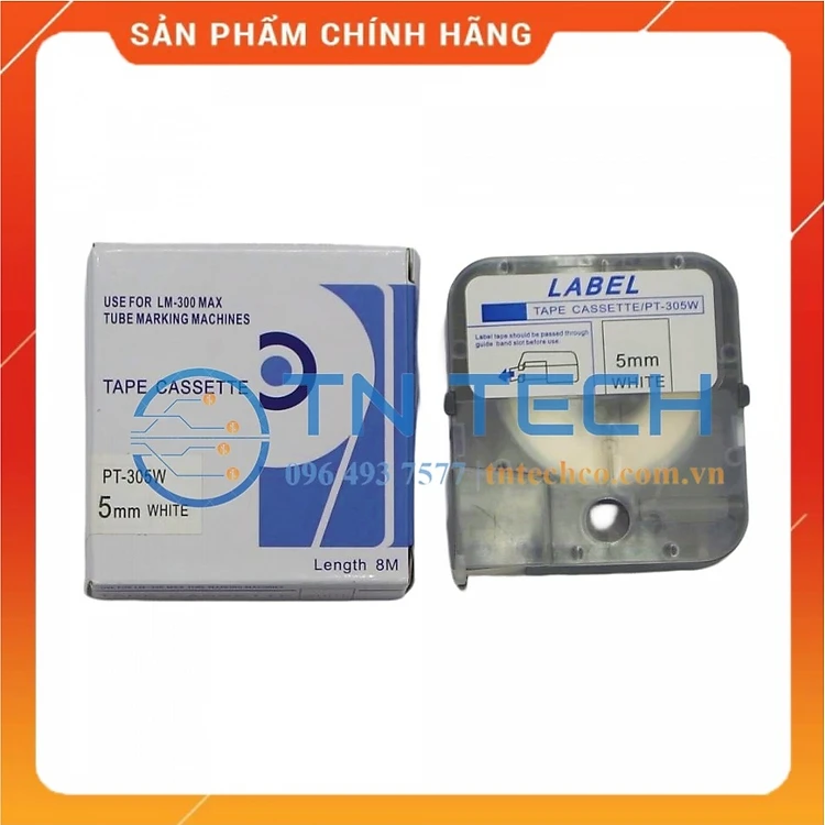 Nhãn in MAX PT-305W - Chữ đen nền trắng 5MM x 8M - Dùng cho máy in ống MAX [Hàng nhập khẩu]
