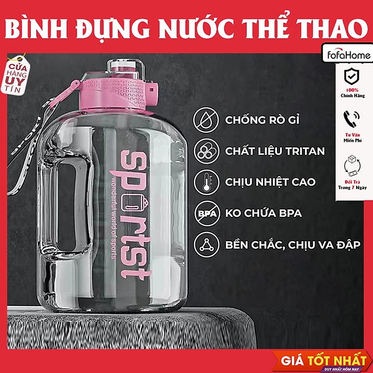 Bình Đựng Nước Chịu Nhiệt Độ Cao 1.7L Và 2.7L Dáng Thể Thao Có Tay Cầm Phong Cách Trẻ Trung Bằng Nhựa