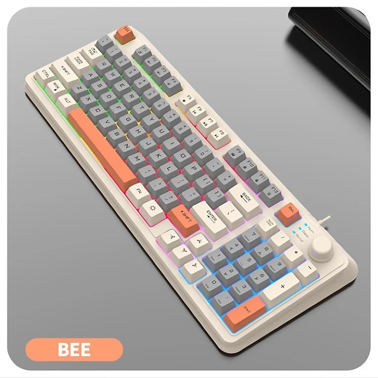 Bàn Phím Led Rainbow Gaming Giả cơ K82 có núm chỉnh âm lượng cho máy tính , laptop hàng nhập khẩu