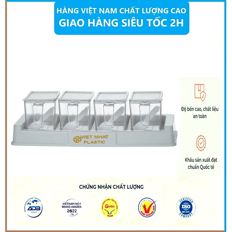 Bộ 4 Lọ Đựng Gia Vị Có Muỗng Nhựa Việt Nhật - Lọ Đựng Gia Vị Chất Liệu Nhựa PP An Toàn - Hàng Việt Nam