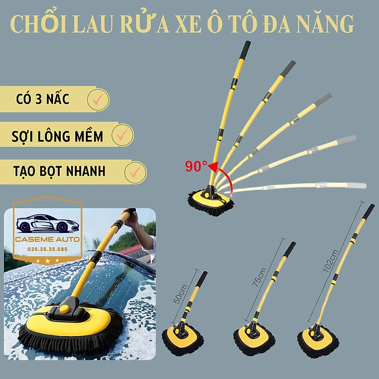 Chổi Rửa Xe Ô Tô, Chổi Lau Kính Ô Tô, Lau Nhà Dáng Cong Ba Nấc Cho Xe Hơi Chuyên Dụng Kết Cấu Chắc Chắn - Hàng Chính Hãng