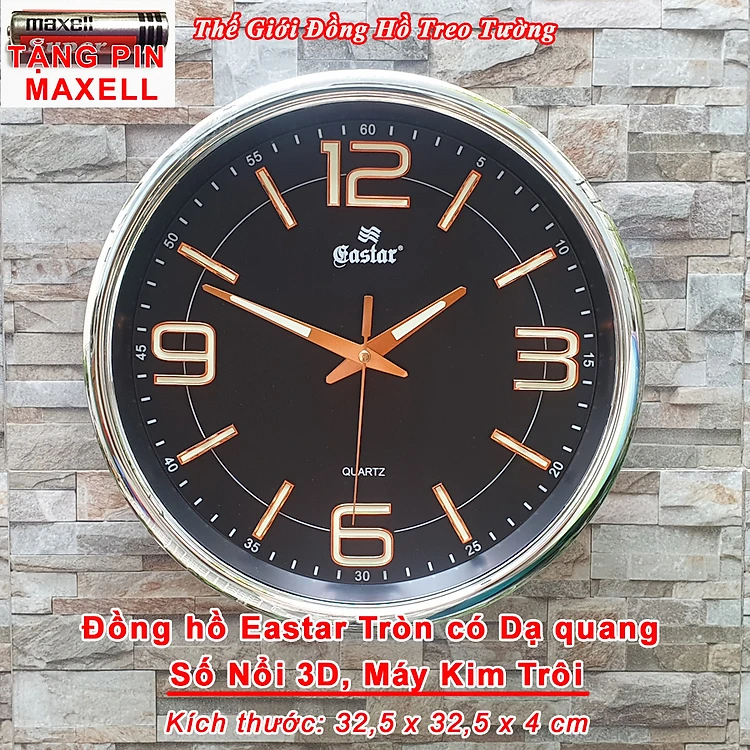 Đồng Hồ Cao Cấp KIM TRÔI EASTAR DẠ QUANG Mặt Tròn - Chữ số Nổi 3D – Máy Nhật Kim Trôi - Tặng Pin Maxell