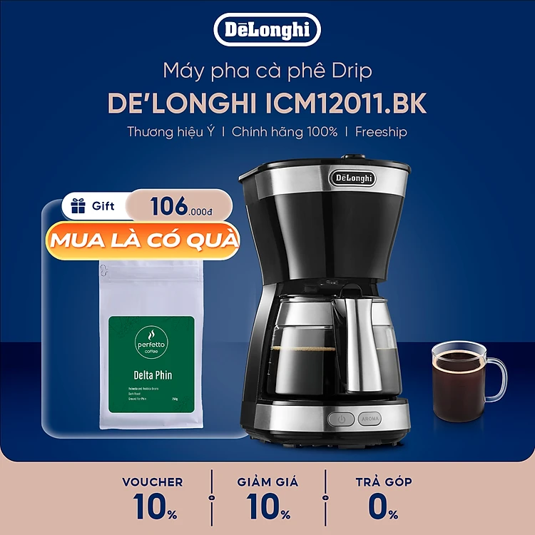 [Hàng chính hãng] Máy pha cà phê drip DeLonghi ICM12011.BK