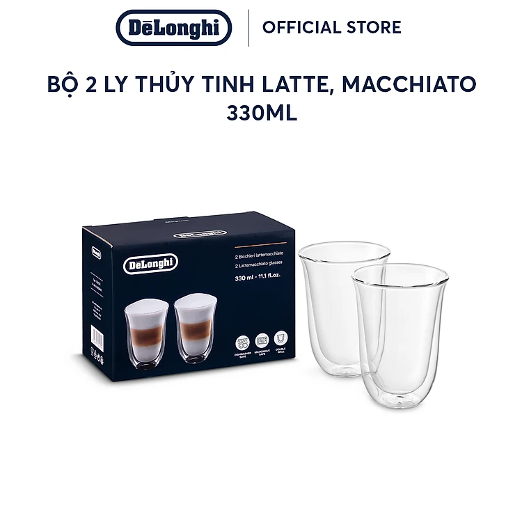 [Hàng chính hãng] Bộ 2 ly thủy tinh Latte, Macchiato DeLonghi (330ml)