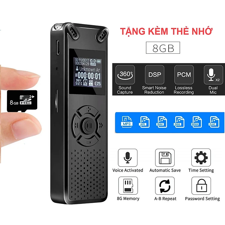 ROGTZ - Máy Ghi Âm Chuyên Nghiệp V91 Chip Xử Lý ATJ21275 Bộ nhớ 8Gb Loa ngoài Mic Thu Âm Kép Định dạng Nhiều chế độ ghi âm Ghi MP3/Wav Hỗ trợ Thẻ Nhớ Ngoài Màn hình LCD Pin 410mAh Thời gian Ghi 581 Giờ Mật Khẩu Bảo Vệ Hỗ trợ Đa Ngôn Ngữ - Hàng Chính Hãng